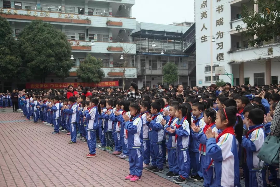 同學(xué)們一大早便在老師的帶領(lǐng)下聚集在學(xué)校操場上等候開學(xué)典禮