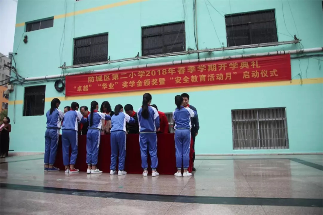 3月14日上午,廣西華業(yè)集團(tuán)董事長龍其生受邀參加防城港市防城區(qū)防城鎮(zhèn)第二小學(xué)的春季開學(xué)典禮、獎學(xué)金頒獎暨安全活動月啟動儀式。
