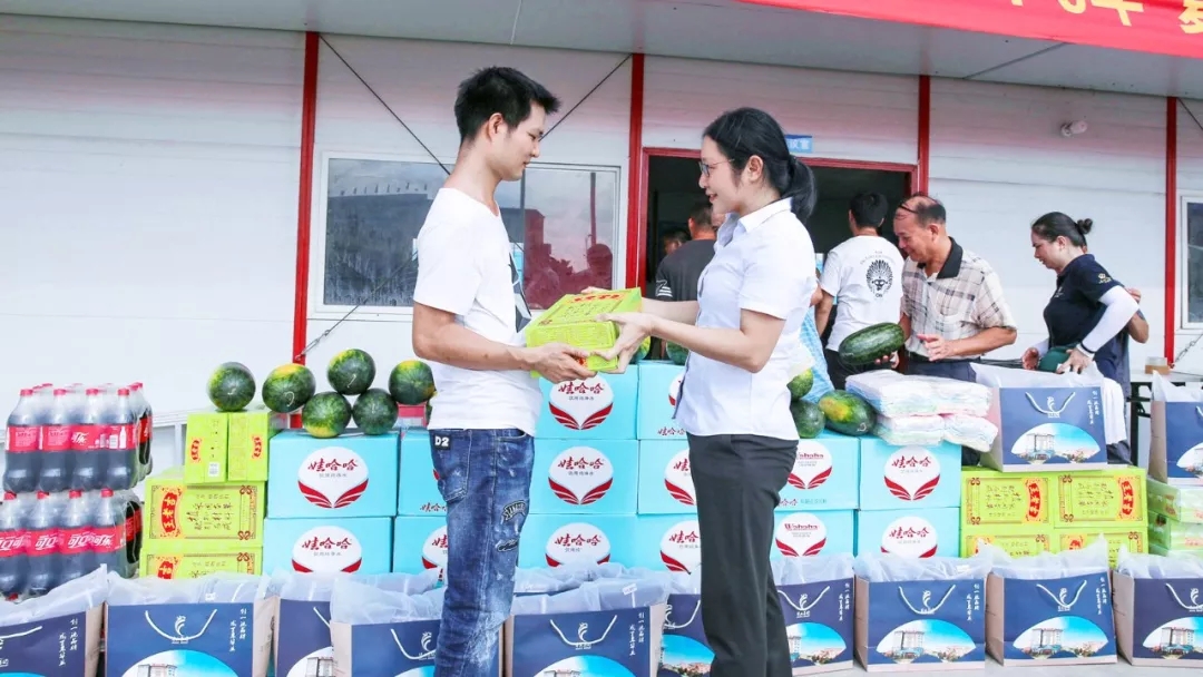 炎炎夏日,酷暑難當(dāng)。為了確保施工項(xiàng)目工地員工清涼工作、安全度夏,創(chuàng)造一個(gè)清涼愉悅的工作環(huán)境,7月18日當(dāng)天,集團(tuán)工會(huì)主席鐘麗霞代表公司為防城港市保稅物流中心(B型)項(xiàng)目部的員工送去一批清涼飲品。一片冰鎮(zhèn)的西瓜、一瓶清涼的飲料,把“涼爽”送到了每位一線員工的“心”上。切實(shí)把關(guān)心員工生活、關(guān)注員工健康工作落實(shí)到實(shí)處,為大家安全度夏提供有力的后勤保障。