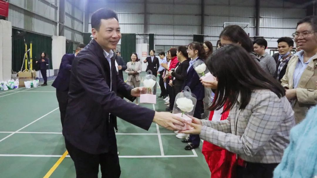 防城區(qū)人民政府代區(qū)長(zhǎng)凌光振為參加活動(dòng)的女同胞們贈(zèng)送節(jié)日禮物